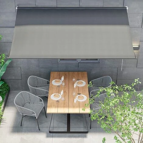 - ☀【Stable et durable】: Support et base de rouleau en aluminium, matériau de haute qualité et durable. Auvent retractable en matériaux textiles: 102% fibre de polyester, revêtement PU imperméable, durable et résistant aux UV. L’auvent vous protège des averses d’été, des rayons ultraviolets et de la lumière intense.
