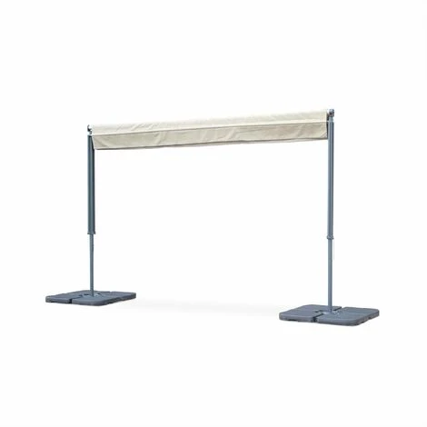 Les dalles de lestage présentées sur le visuel ne sont pas incluses avec le store (suggestion de présentation). Vous pouvez néanmoins les retrouver sur notre site dans le rayon parasol, ou bien vous procurer des dalles de 50x50cm en béton dans n’importe quelle grande surface de bricolage.<br/>