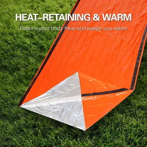 Le kit d’urgence comprend un poncho et un sac de couchage, tous deux fabriques dans un materiau PE impermeable et un revetement reflechissant la chaleur pour vous garder au chaud et au sec, equipement d’urgence indispensable pour le camping, la randonnee, la randonnee, la survie, l’aventure, etc.