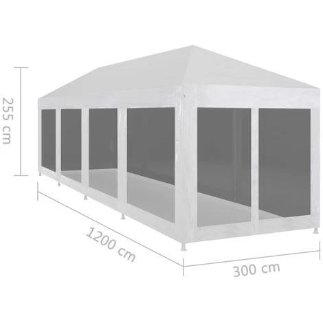Notre tente de réception avec parois latérales en maille est parfaite pour tous ceux qui veulent avoir une sensation de plein air mais qui ne veulent pas avoir des problèmes avec les insectes lors d’activités en plein air. Cette tente de réception sera idéale pour un grand nombre d’événements en plein air, telles que spectacles, mariages, fêtes, barbecues, festivals, etc. Fabriquée en acier enduit de poudre, cette tente de réception est extrêmement durable. Le revêtement de toiture est en polyéthylène de haute qualité, ce qui le rend résistant à l’eau et aux UV. La tente dispose de dix parois latérales en maille qui vous protègent des insectes nuisibles. Les deux des parois latérales ont une entrée à fermeture éclair pour un accès facile. La tente de réception est facile à installer avec les accessoires de montage inclus.