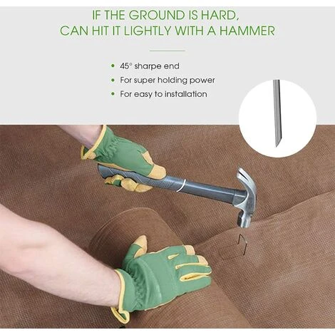 ăQUALITĂ SUPĂRIEUREăLes agrafes de paysage robustes sont fabriquĂ©es en acier de calibre 11 (3,0 mm), les agrafes en forme de U de 15 cm de long s’enfoncent suffisamment profondĂ©ment pour rester dans le sol, sĂ©curisant vos articles de jardin du vent. Acier galvanisĂ© Ă chaud avec une Ă©paisse couche de revĂȘtement qui ne rouille pas. Il peut durer de nombreuses annĂ©es rĂ©utilisable comme neuf, Ă©conomisez votre argent Ă long terme. ăLOT DE 50ă Lot de 50 agrafes de jardin de 15 cm, peut ĂȘtre utilisĂ© pour une multitude de besoins extĂ©rieurs et de projets d’amĂ©nagement paysager. IdĂ©al pour ancrer les tissus de jardinage tels que les bloqueurs, les couvertures pour Ă©lever les lits, les bĂąches et plus encore. ăCONCEPTION SPĂCIALEă La conception du sol trapĂ©zoĂŻdal offre une tension accrue, des extrĂ©mitĂ©s pilotes Ă bout pointu aident les goupilles en U Ă pĂ©nĂ©trer dans le sol. Et l’extrĂ©mitĂ© inclinĂ©e des piquets de sol permet aux agrafes de paysage de pĂ©nĂ©trer facilement et rapidement dans le gazon, les feuilles de plastique, les sols lourds, les tapis, un maillet en caoutchouc ne devrait ĂȘtre nĂ©cessaire que pour les sols durs. clĂŽtures pour chiens, gazon, roseraie, jardin de fleurs, dĂ©coration florale, lit surĂ©levĂ©, clĂŽture pour animaux de compagnie, cages Ă tomates, et vous pouvez utiliser ces agrafes pour supprimer certains fantĂŽmes de fil de poulet fabriquĂ©s pour Halloween et bien d’autres utilisations.