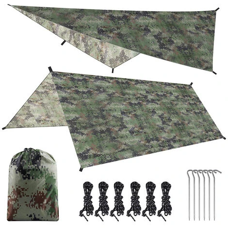 BĂąche polyvalente : la bĂąche de camping peut ĂȘtre utilisĂ©e comme hamac, sac Ă dos, tente, auvent de tente, auvent, couverture de pique-nique, couverture de plage, tapis de camping, pluie, humiditĂ©, auvent de plage et de parc, couverture de tente, etc.