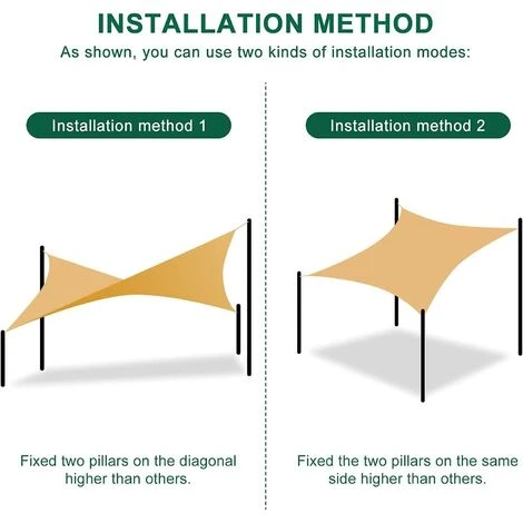 Le voile d’ombrage est rĂ©sistant Ă l’eau, avec des coutures puissantes et des anneaux en D en acier inoxydable durable des deux cĂ´tĂ©s pour une installation plus robuste, et il est facile Ă laver Ă l’eau, anti-dĂ©coloration et pas de taches.