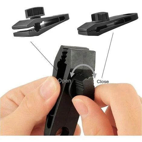 [Matériau de haute qualité] Le produit est fait de polyester et de nylon de haute qualité, léger, de haute résistance, solide et durable. Lorsquil est installé dans une tente, il peut résister à des pressions plus élevées, nest pas facile à tomber et peut être réutilisé. Facile à ranger et à transporter. [Caoutchouc] Le clip a une bouche en forme de crocodile et la bouche en forme dengrenage garantit que le clip mord fermement dans la toile. De lautre côté, il y a un trou à travers lequel des boutons ou des fils peuvent être insérés. [Facile à utiliser] Le clip de toile robuste est facile à installer ou à retirer. Il suffit de serrer ou de desserrer les vis pour le fixer sur une toile épaisse ou fine. [30 par paquet] Chaque paquet contient 10 crochets à clip, 10 cordes et 10 mousquetons pour le camping en plein air ou les tentes de pique-nique. [Large application] Le clip de bâche multifonctionnel peut être utilisé pour les tentes, les auvents, les bâches, les caravanes, les bâches, les couvertures de bateaux, les auvents, les couvertures de piscine, les abris ou autres tissus qui nécessitent dautres points de support.