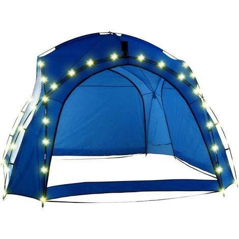 Le pavillon dispose d’une possibilité de suspension supplémentaire de la lampe Led en plein centre de la structure. Il est livré dans un sac de rangement qui vous facilitera son transport. Pour plus de stabilité, vous seront également livrés des piquets de fixation solides et des cordes tendeurs élastiques très résistants.