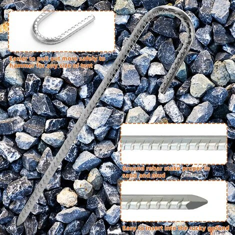 - ⛺[Piquets galvanisés antirouille] – Les piquets de tente en métal sont fabriqués à partir de barres d’armature en acier robuste, l’acier galvanisé rend le crochet brillant et plus lisse ,antirouille ,robuste.
