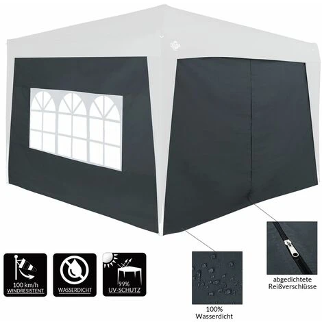 Les parois latérales peuvent être rapidement et facilement attachées à votre pavillon. Une paroi latérale est équipée d’une fermeture éclair. Si nécessaire, vous pouvez aussi fermer la paroi de la tonnelle facilement ou simplement l’attacher à l’aide des bandes de maintien.