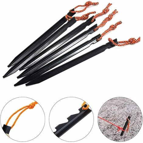 4.Légères et durables: nos piquets de tente sont fabriqués en alliage d’aluminium à haute résistance provenant de fournisseurs haut de gamme, seulement 13 g par piquet de tente, légers mais durables, plus de sécurité.