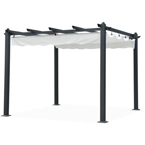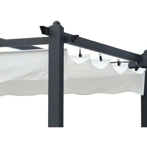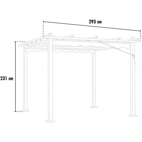 – Le toit couvert coulissant peut être fermé en cas de vent fort ou pendant l’hiver, lorsque vous n’utilisez pas le gazebo. Possibilité de fixer au sol ou sur le terrain les pieds du kiosque.