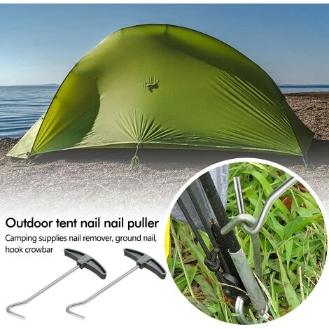 Matériau de qualité supérieure : la poignée est en plastique de haute qualité et le crochet est en alliage, ils sont robustes et durables. Pack de 2 x extracteurs de piquets de tente.