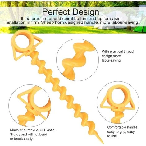 【Conception en spirale】Avec une conception en spirale élancée, les clous de tente plus épais ont une meilleure adhérence et une meilleure utilisation. La pointe inférieure facilite l’insertion en douceur dans un sol meuble et un retrait facile.