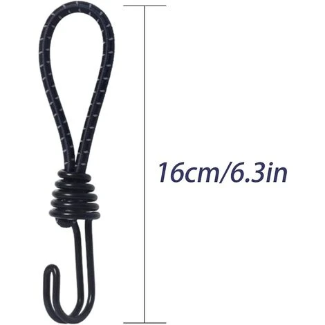 Portable : sangles élastiques avec crochets de 16 cm, corde de 19 cm de long, peut utiliser deux cordes pour se connecter en une pour devenir une corde à double crochet.