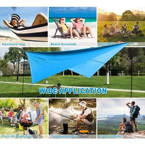 【APPLICATION LARGE】 Fabriquée avec un tissu polyester, notre bâche de camping peut empêcher les UV et résister à l’eau ou à la neige, ce qui aide à résoudre le problème de la forte nocivité des UV et des averses soudaines.Utilisation idéale pour le camping, la randonnée, l’escalade, la plage ou parc, tapis de pique-nique, couverture de prairie de plage, tente simple etc.