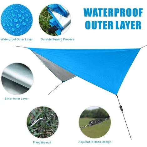 Caractéristiques: Ce produit convient à un large éventail d’applications.Il peut être utilisé comme rideau, ainsi que comme revêtement de sol résistant à l’humidité et comme tapis de pique-nique.Il est compact et facile à transporter. À utiliser avec un hamac pour se protéger de l’ombre et de la pluie.