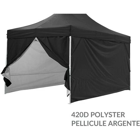 PACK 4 CĂ”TÉS – 3 MURS PLEINS AVEC UNE PORTE 420D POLYESTER PELLICULÉ ARGENTÉ 3X4,5M GAMME 32MM