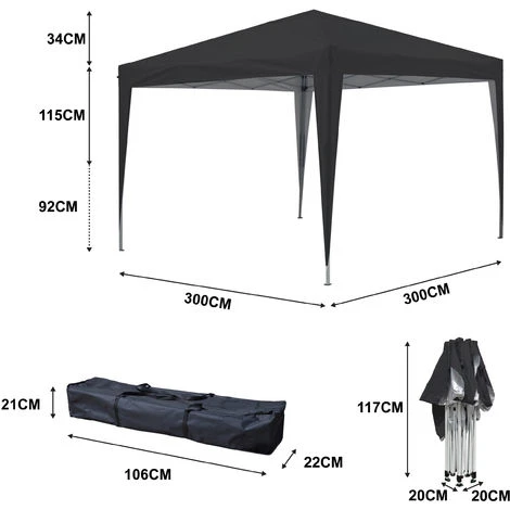 Elle possède une structure tubulaire pliante en aluminium & acier d’une épaisseur de 0,8mm. Votre pavillon de jardin est livré avec un sac de transport à roulette et vous pouvez l’emporter partout avec vous.