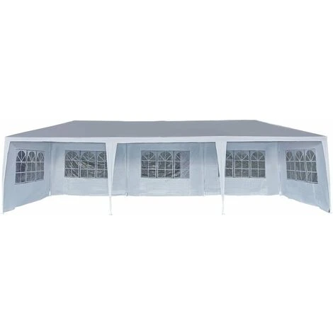Tente de rĂ©ception “Carolina 9” – 24.39 m² – Dimensions extĂ©rieures : 8.56 x 2.85 x 2.6 m – Dimensions intĂ©rieures : 8.56 x 2.85 x 1.98 m – Blanc – Structure : acier – Matière : polyĂ©thylène (toit, panneaux, fenĂŞtres) – DensitĂ© de la toile : 90 g/m² – 2 portes (dimensions : 285 x 195 cm) – 6 fenĂŞtres transparentes (dimensions : 176 x 102 cm) – RĂ©sistant Ă l’eau – Anti-rouilleTente de rĂ©ception “Carolina 9”