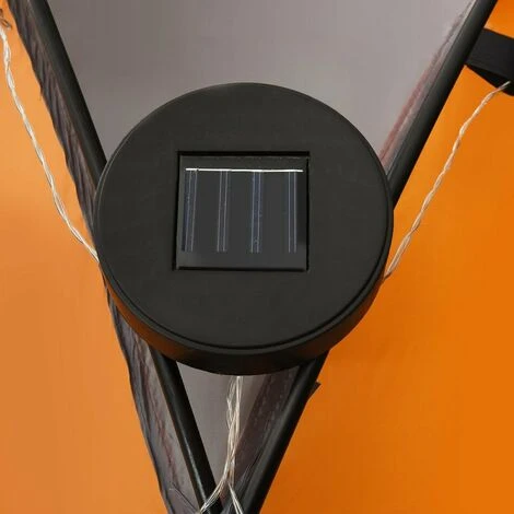Cette tente convient aux fêtes spontanées dans votre propre jardin ainsi qu’à une utilisation plus longue sur le camping, comme ombre sur le bac à sable ou la pataugeoire ou comme toit toute l’année pour le bain à remous. La tente de réception est faite de tissu 100 % polyester avec revêtement PA, ce qui lui permet de résister aux UV et à l’eau. Le cadre est construit en fibre de verre robuste et est donc résistant à la rouille et également léger. Les quatre parois latérales “moustiquaires” incluses offrent une protection idéale contre toutes sortes d’insectes. Équipées d’une fermeture éclair, elles se fixent en quelques secondes. De plus, l’éclairage LED avec 96 LED peut être facilement allumé et éteint à la main, et le module solaire fourni charge la batterie intégrée pendant la journée. REMARQUE : ce produit ne doit JAMAIS être utilisé par mauvais temps, tel que vent fort, pluie abondante, neige, tempête, etc.