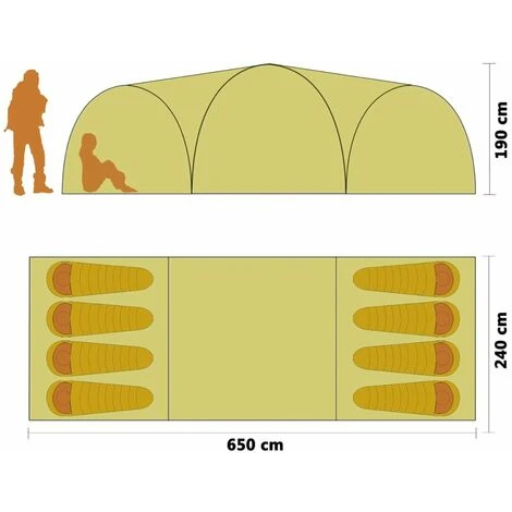 Cette tente de camping dispose d’une salle spacieuse pouvant accueillir jusqu’à 8 personnes avec des bagages. Elle est parfaite pour camper en famille avec les enfants ou passer un week-end avec des amis. L’auvent de cette tente est fait de tissu polyester 180 T respirant avec revêtement de PA, qui aide à bloquer la plupart des rayons nocifs. Contre la saleté et la montée de l’humidité du sol, le film de sol en tissu oxford à l’intérieur est cousu étroitement à la tente. Son cadre en fibre de verre robuste garantit stabilité et durabilité. Les deux côtés avec des fenêtres en maille assurent l’air frais et empêchent les insectes d’entrer. Les portes à fermeture éclair vous permettent d’entrer et de sortir facilement. Elle comprend également des chevilles d’ancrage pour une meilleure stabilité par vent fort. La livraison comprend le sac de voyage pour un transport et un stockage faciles.