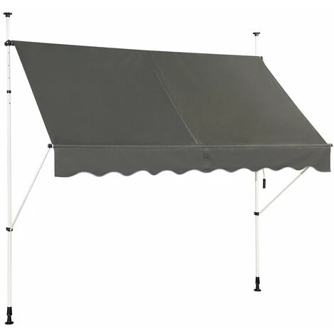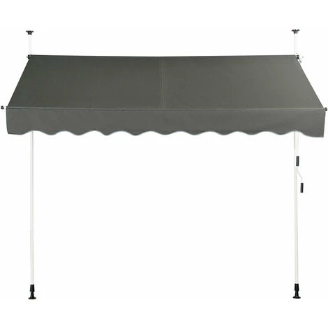 Présentation produit: Auvent manuel rétractable 250 cm hauteur réglable de 200-300cm store banne en aluminium et tissu oxford anti uv gris