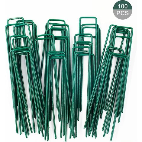 100 pcs piquets de fixation pour jardin est fabriquĂ© en acier inoxydable galvanisĂ© antirouille de haute qualitĂ©.La peau extĂ©rieure est enveloppĂ©e d’une peinture anti-corrosion verte,ce qui peut amĂ©liorer la durĂ©e de vie des ongles.L’extrĂ©mitĂ© de l’piquets de jardin est pointue,facile Ă fixer et Ă dĂ©monter,elle peut facilement pĂ©nĂ©trer dans la bâche en tissu et se fixer au sol.