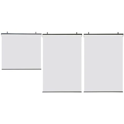 Descriptif du lot de 3 stores enrouleurs pour pergola blancsA la recherche d’une occultation personnalisée pour votre pergola ou tonnelle ? Ne cherchez plus, vous avez trouvé la solution grâce au lot de 3 stores pour pergola blancs ! Adaptables sur les structures des pergolas de 3,5 CM d’épaisseur (au maximum) vous pouvez installer vos trois stores sur un côté de 4M. Facile à utiliser, les stores verticaux s’enroulent et se déroulent manuellement grâce à un enrouleur à fil. Voila le combo idéal pour créer de l’occultation tout en apportant de la lumière grâce au coloris clair de vos stores de pergola. Apportez une touche de modernité à votre extérieur tout en vous ombrageant selon vos besoins avec ce lot de 3 stores blancs. La structure du store en fer et en aluminium leur procure robustesse et stabilité. De plus, le tissu du store en polyester 180 gr/m² vous protège des rayons du soleil et des regards indiscrets tout en apportant une touche de modernité à votre extérieur.Positionnez facilement les stores verticaux grâce à leurs crochets de 7,5 x 4 CM. Fixez-les à l’endroit souhaité et déplacez-les selon vos envies. Vous pouvez mettre jusqu’à 2 stores sur une longueur de pergola de 3M et jusqu’à 3 stores sur une longueur de 4M.Vous pouvez également positionner vos stores verticaux pour pergola devant une fenêtre, une porte ou sur une véranda (visserie non fournie).Dimensions du lot de 3 stores pour pergola blancs- Dimensions hors tout d’un store : Longueur 225 CM x largeur 124 CM – Dimensions de la toile : Longueur 225 x largeur 120 CM – Dimensions des crochets : L. 4 x l. 2 x H. 7,5 CM- Visserie fournie (pour une structure maximale de 3,5 CM d’épaisseur)- Tissu du store : polyester 180 gr/m²- Structure : fer et aluminium- Enrouleur à fil (manuel)- Convient à l’ensemble de nos pergolas hormis les pergolas PAPILLON et les côtés latéraux de la pergola ALIARetrouvez tous nos stores et accessoires pour pergola sur notre boutique en ligne !