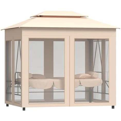 Ce belvédère à balancelle élégant et spacieux peut accueillir confortablement deux personnes et offre de l’ombre pour vous abriter du soleil grâce à son grand auvent. Grâce aux rideaux équipés de fermetures à boucles et crochets, vous pouvez facilement fermer les quatre côtés pour créer une zone fermée. Le filet fermé est idéal pour empêcher les insectes volants d’y entrer et vous offrir un refuge privé. Le siège peut être converti en un lit. Deux oreillers rectangulaires et deux oreillers cylindriques sont inclus pour plus de confort. Le cadre en acier durable a reçu une finition enduite de poudre résistante à la corrosion. Les housses de coussin en polyester imperméables sont amovibles pour un nettoyage facile. L’assemblage est également très facile.
