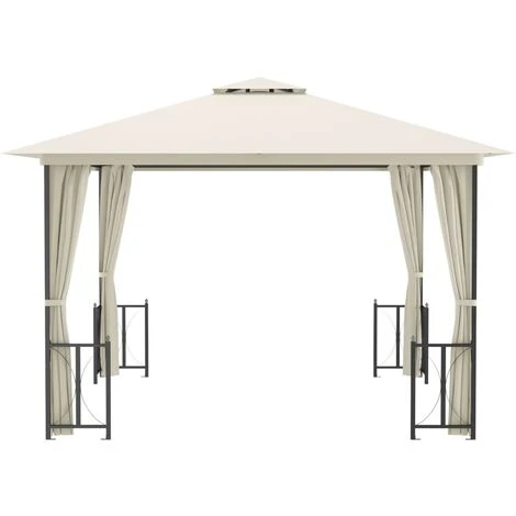 Ajoutez de l’ombre et de l’intimité pour rendre votre espace de vie extérieur plus agréable avec cette tonnelle de jardin ! Matériau haut de gamme : le belvédère de jardin est construit avec un cadre en acier enduit de poudre. Il est donc très robuste et durable. Le toit est fait de 100 % polyester avec revêtement PA, qui est résistant à l’eau et peut bloquer les rayons les plus nocifs.Double toit pour la circulation de l’air : le toit à 2 niveaux offre une meilleure circulation de l’air.Parois latérales pour la protection : les parois latérales sont incluses pour une protection complète, ce qui vous donne plus d’intimité tout en gardant les moustiques et autres insectes ennuyeux à l’écart. Les parois latérales amovibles facilitent le passage d’une configuration ouverte à un abri plus privé.Design élégant : chaque pied est livré avec deux panneaux de décoration, ajoutant une beauté supplémentaire. Remarque :Ce produit ne doit JAMAIS être utilisé par mauvais temps, tel que vent fort, pluie abondante, neige, tempête, etc.
