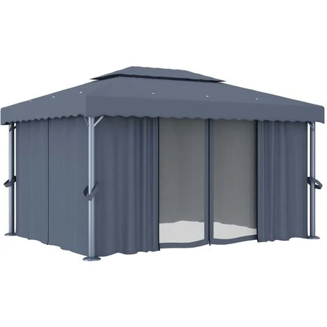 Cette élégante tonnelle transformera certainement votre cour en un point de mire sophistiqué et fonctionnel ! Elle est conçue pour fournir un endroit frais pour les fêtes d’extérieur, les pique-niques en famille, les barbecues dans la cour et autres rassemblements sociaux. Elle est construite avec un poteau en aluminium et un tube de support en acier enduit de poudre, ce qui garantit une robustesse et une durabilité supérieures. L’auvent et les parois latérales sont en tissu polyester de qualité avec revêtement de PA, vous protégeant des rayons nocifs et de la pluie douce. Un toit à 2 niveaux bien conçu assure une circulation d’air suffisante en dessous. De plus, les rideaux et les moustiquaires sont inclus pour une protection complète, vous offrant plus d’intimité tout en tenant les moustiques et autres insectes gênants à distance. Des crochets et des boucles de fixation sont inclus pour une fixation facile. De plus, la guirlande lumineuse crée une ambiance chaleureuse dans votre jardin lorsque le soleil se couche. Les lumières n’apportent aucune pollution à l’environnement car elles sont chargées par l’énergie solaire pendant la journée. Remarque : veuillez ne pas la laisser dehors dans des conditions météorologiques défavorables.