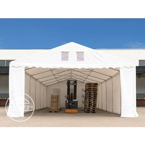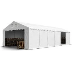Cette tente de stockage dispose d’une armature facile à monter en acier entièrement galvanisé et de bâches en PVC épaisses d’env. 550g/m² dotées d’un tissu enduit. Les bâches en PVC offrent une haute résistance aux UV (indice 80+) et sont 100% imperméables. Les bâches de côtés sont fixées tous les 2 mètres et permettent ainsi plusieurs aménagements de la tente.