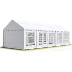 La tente de réception ECONOMY dispose d’une armature très facile à assembler. Les tubes en acier entièrement galvanisés sont traités contre la corrosion. Les bâches en PVC épais d’env. 500g/m² offrent une haute protection contre les rayons UV du soleil (indice 80+) et protègent efficacement contre la pluie (100% imperméables). Les toiles de côtés de 2 m peuvent être montées ou démontées selon vos envies et permettent de multiples aménagements possibles !