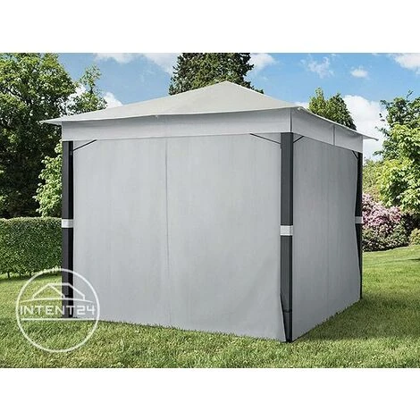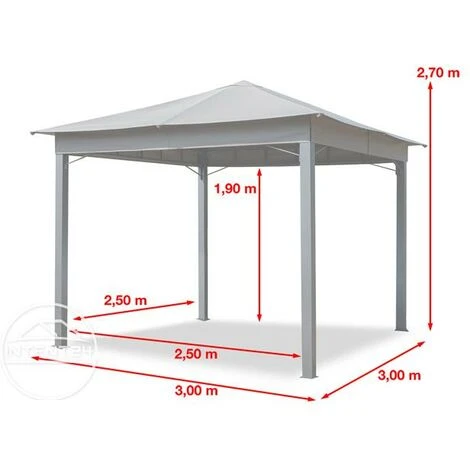 Ce pavillon de jardin se montre très Ă©lĂ©gant. Les poteaux en aluminium avec leurs profilĂ©s d’environ 9×9 cm constituent la base d’une bonne stabilitĂ©. Le cadre en aluminium rĂ©sistant aux UV, Ă la corrosion et aux intempĂ©ries vous donne une construction robuste. De plus, la construction du pavillon au moyen du système Ă clips de haute qualitĂ© est rapide et facile Ă monter. La bâche en polyester de 220 g / m² avec revĂŞtement PU et protection UV 50+ sert non seulement de parasol, mais est Ă©galement 100% impermĂ©able. Les 4 panneaux latĂ©raux fournis et assortis aux couleurs garantissent l’intimitĂ© de chacun.