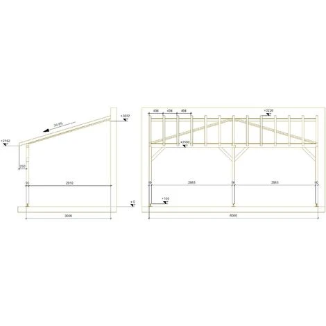 Les sections utilisées pour la conception vous garantisse la possibilité de tuiler votre appentis avec une pente à 30%.