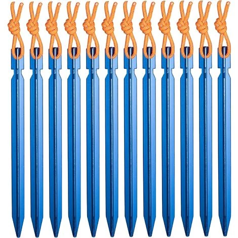 Taille : la taille du clou de la tente est de 18 cm/7,08 in, et chaque clou pèse 13 g, ce qui est pratique à transporterMatériau : les piquets de tente de camping sont fabriqués en alliage d’aluminium durable, qui est très léger et peut assurer la sécurité et la stabilité de votre tente