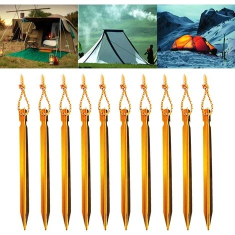 - FONCTION PRINCIPALE: La pointe acérée lui permet dêtre insérée dans le sol pour fixer fermement la tente au sol, cest un équipement nécessaire pour le camping et lalpinisme.