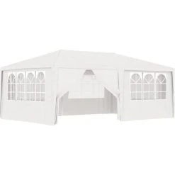 Le chapiteau de jardin est fabriqué en polyéthylène résistant aux UV et à l’eau et est donc parfaitement adapté à une utilisation en plein air. Le cadre est fabriqué en acier résistant à la rouille, ce qui rend la tente stable et durable. La tente de réception a des panneaux latéraux, chacun avec des fenêtres décoratives, et un panneau de porte avec une fermeture éclair pour une entrée facile. Le belvédère de jardin est facile à assembler.
