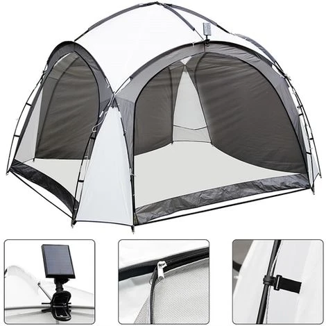 - Inclut 4 parois latérales en moustiquaire et 2 parois latérales opaques