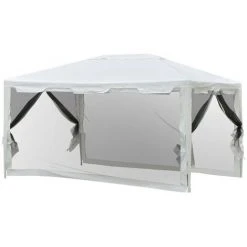 - Dimensions : 4 L x 3 l x 2.45 H(m) ; Hauteur de l’avant-toit: 2 m ; Diamètre du tube de pied : 32 mm
