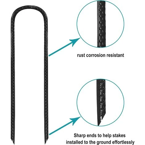 ➤Piquets de conception en forme de U avec extrémités inclinées pour une insertion facile dans le sol, aidant à stabiliser le trampoline pendant les tempêtes ou les vents forts.