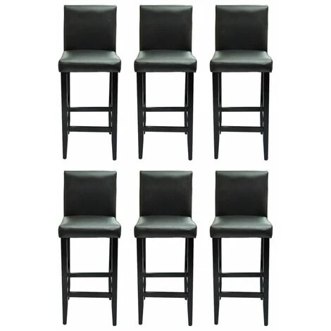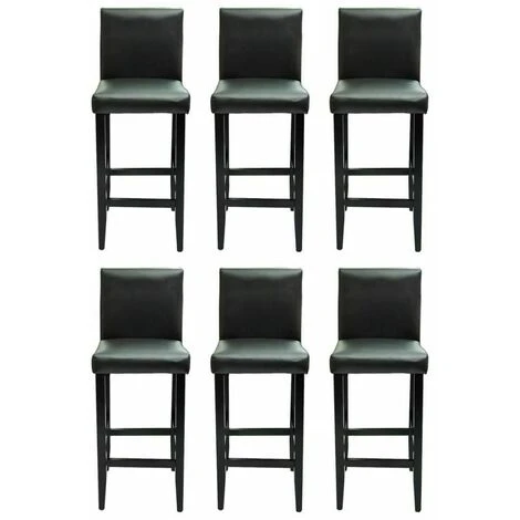 Ces tabourets de bar ont une stabilité parfaite grâce à leurs 4 pieds en bois. Les couleurs chaudes du bois peuvent s’accorder à presque tous les styles d’intérieurs. Ces tabourets ont une hauteur fixe et leurs sièges ne pivotent pas. La chaise est en simili cuir, qui est durable et très facile à nettoyer. Pour vos pieds, aucun problème avec le cale-pied ! Comme ces tabourets sont revêtus de cuir synthétique, ils sont faciles à nettoyer. La livraison comprend 6 tabourets de bar en noir.