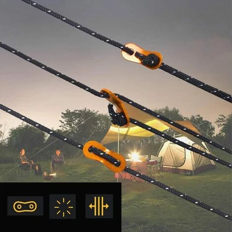 Boucle à réglage rapide : chaque corde réfléchissante est équipée d’un ajusteur de corde en aluminium, ce qui est pratique et rapide pour régler la longueur et l’étanchéité de la corde.