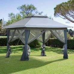 – Tonnelle composée de 4 côtés amovibles (2 arrières avec zip et 2 latérales) pour une parfaite adaptabilité en fonction des conditions climatiques