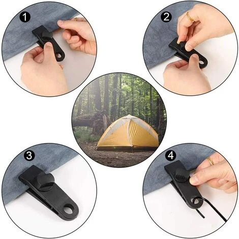 Clip pour bâches : La conception puissante des mâchoires de préhension rend plus stable. L’extrémité arrière du clip de bâche peut être attachée à n’importe quel cordon élastique standard, corde ou cordon extensible pour couper. Largement utilisé: Pince clip bâche sont idéales pour les tentes de camping en plein air, auvents, caravanes, parasol, bâches, auvents, couvertures de bateau, couvertures