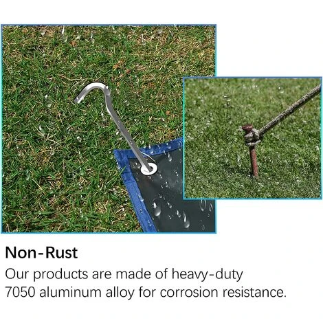 【Utilisation polyvalente】 Les piquets de tente sont utilisés pour les tentes, les bâches, les déflecteurs de vent, les mâts, les lignes, les filets et bien d’autres choses qui doivent être maintenues en un seul endroit et en une seule position sur le sol au moyen de cordes.