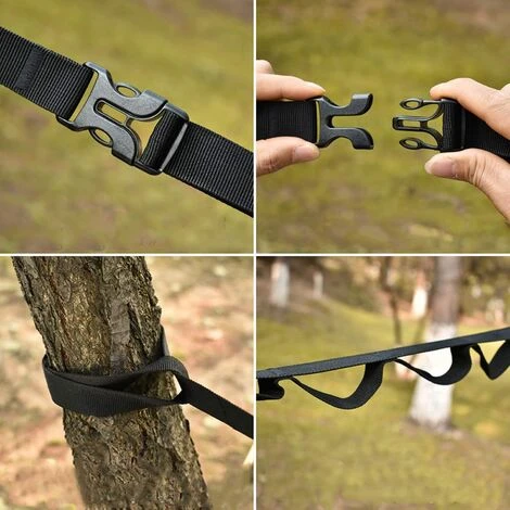 Plusieurs boucles and crochets and pinces Ă linge : la ceinture principale a 19 boucles. Vous pouvez fixer l’extrĂ©mitĂ© sur 2 arbres puis installer votre Ă©quipement sur la corde. La boucle sur la corde empĂŞche vos objets de glisser au milieu. Vous pouvez ainsi accrocher des Ă©quipements de camping spacieux.