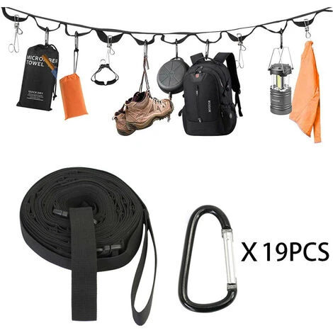 Taille appropriée : notre sangle de rangement de camping a une longueur totale de 6.2 m et la longueur peut être ajustée en ajustant la boucle à volonté. Vous pouvez y accrocher des pots, bols, louches, pots, lanternes, sacs à dos, chaussures, vêtements, etc.