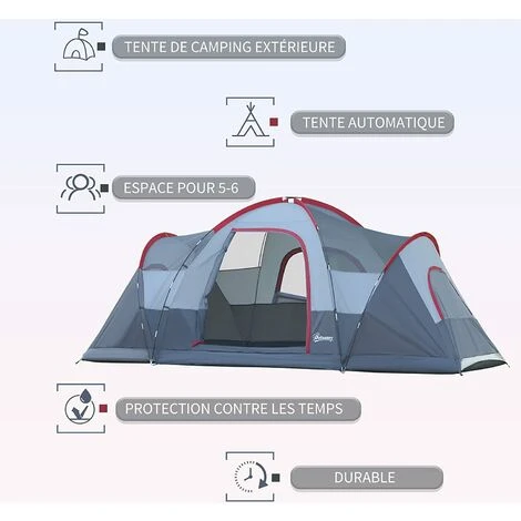 – Tente de camping familiale idéale pour 5 jusqu’à 6 personnes max.