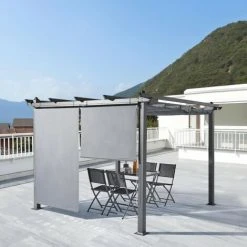 AUTRES Tonnelle De Jardin – En Acier Avec Toit En Toile Gris – L296 X P400 X H201/286 Cm