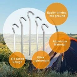 BENOBBY KIDS 20 Pièces Piquets De Tente, Crochets De Tente En Aluminium, 18 Cm Clous De Tente Hexagonaux, Accessoires De Tente Avec Un Sac De Rangement Pour Jardinage, Camping Et Pêche