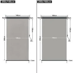 Froadp Auvent Vertical, Store Enrouleur Occultant Avec Manivelle, Auvent De Confidentialité, Crème Solaire Résistante Aux UV, Adapté Pour L’intérieur Et L’extérieur, 250x140cm, (Gris Clair)